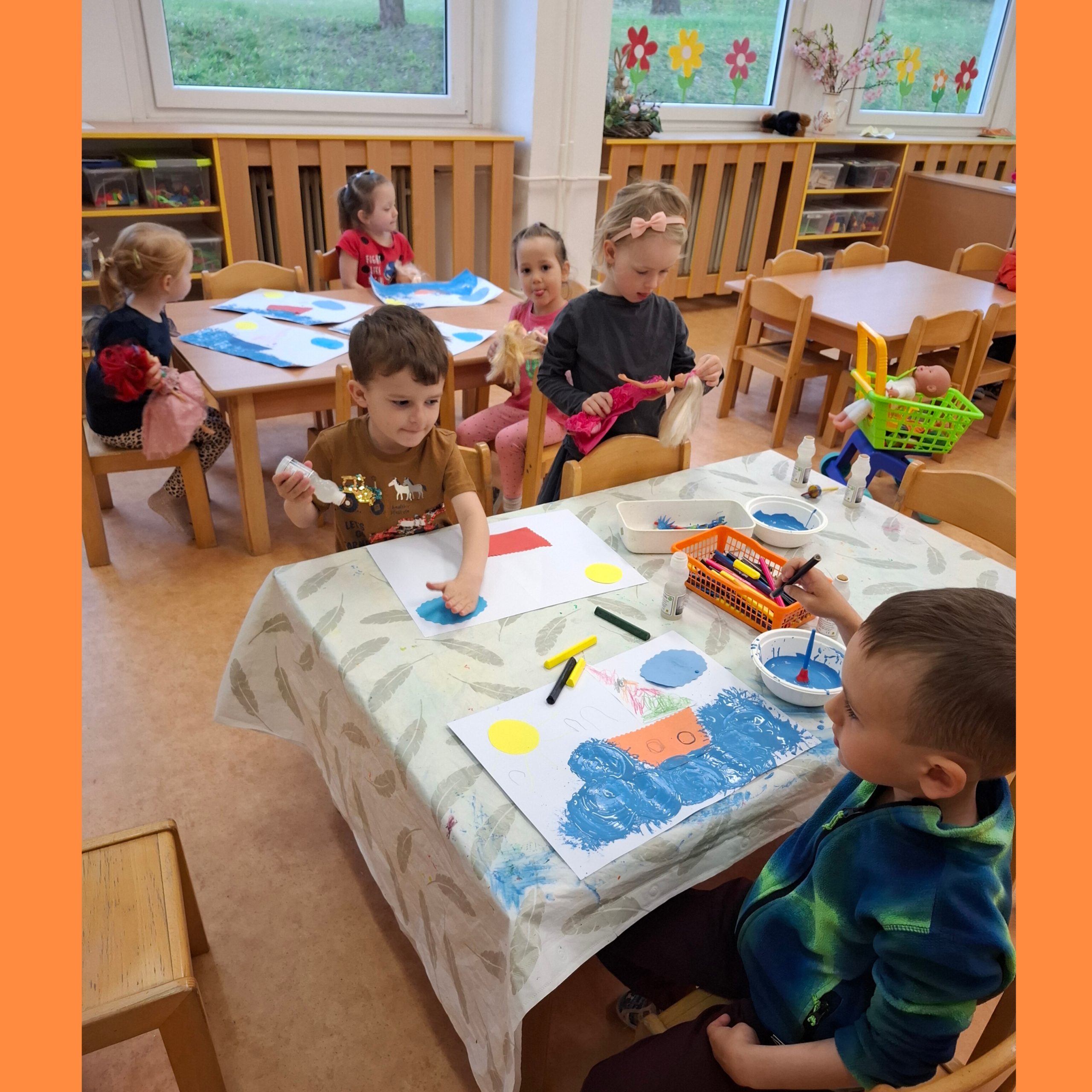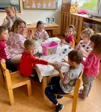 V přízemí mateřské školy jsou tři třídy pro děti ve věku 3 – 4 roky, šatny dětí, sociální zařízení, výdejna stravy a sborovna.
