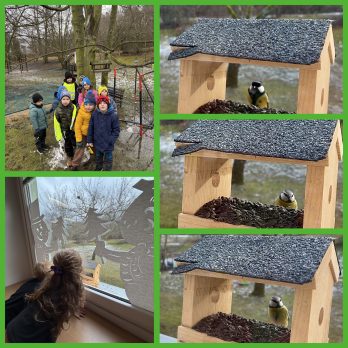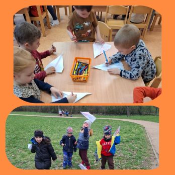 V prvním patře jsou tři třídy pro děti ve věku 5 – 6 let, šatny dětí, sociální zařízení, výdejna stravy a ředitelna.