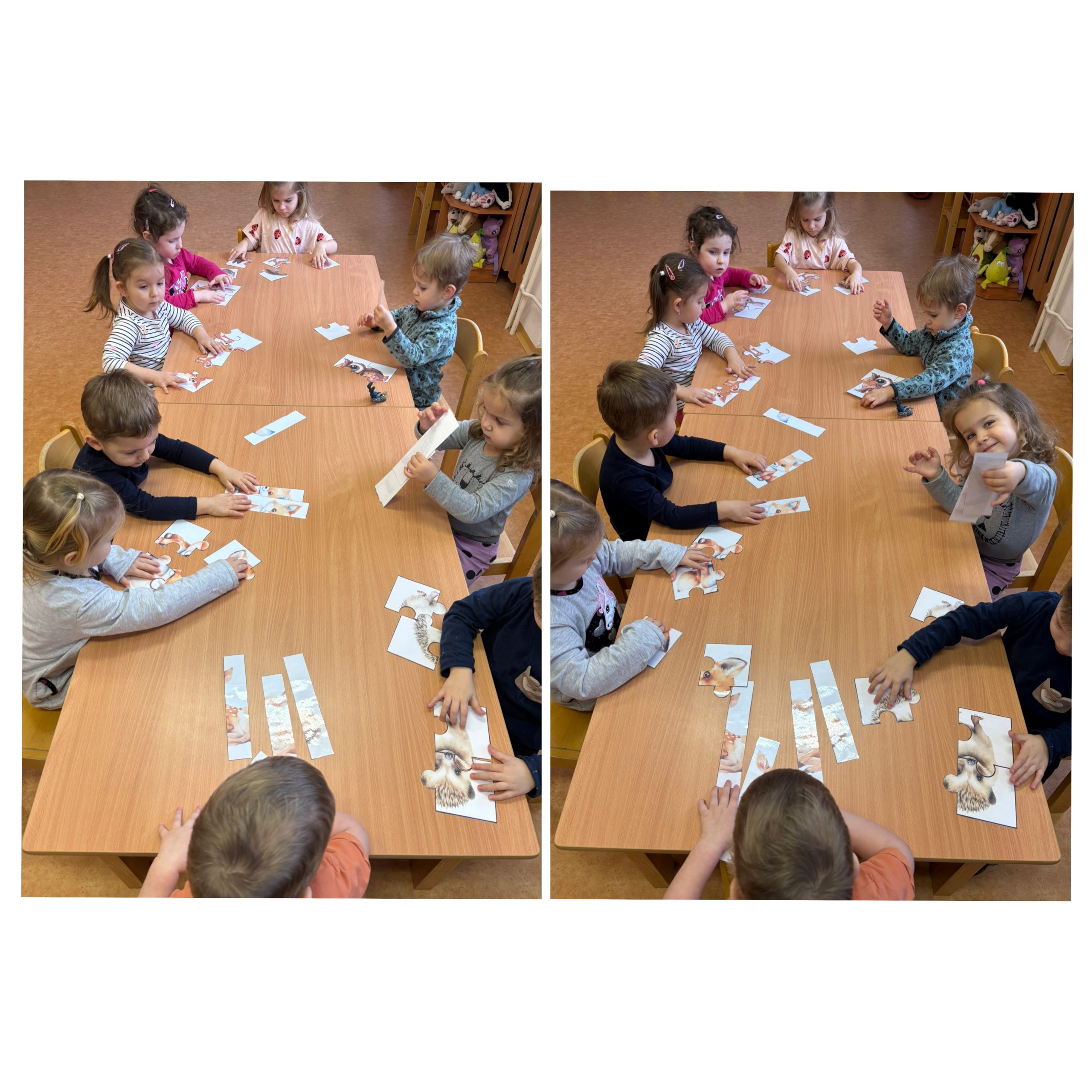 Děti z notičky skládají puzzle🐿️🦊🐻