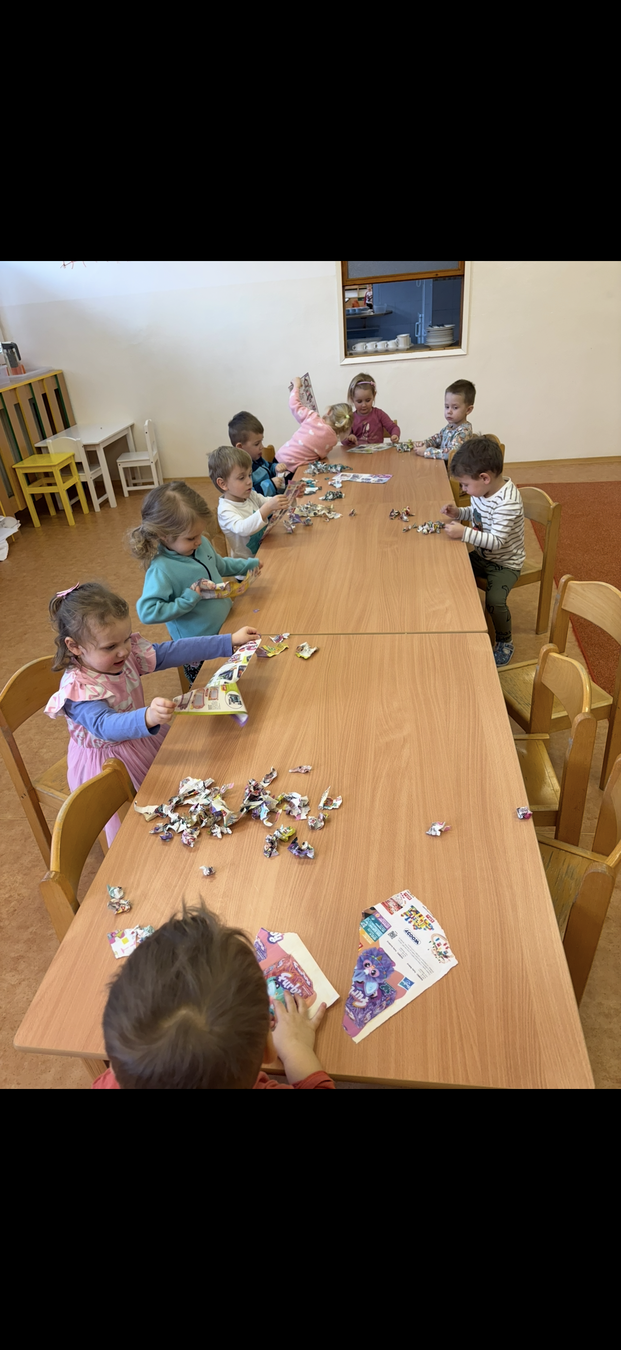 Děti ze Zvonečku -trhání papíru a tvorba papírových kuliček